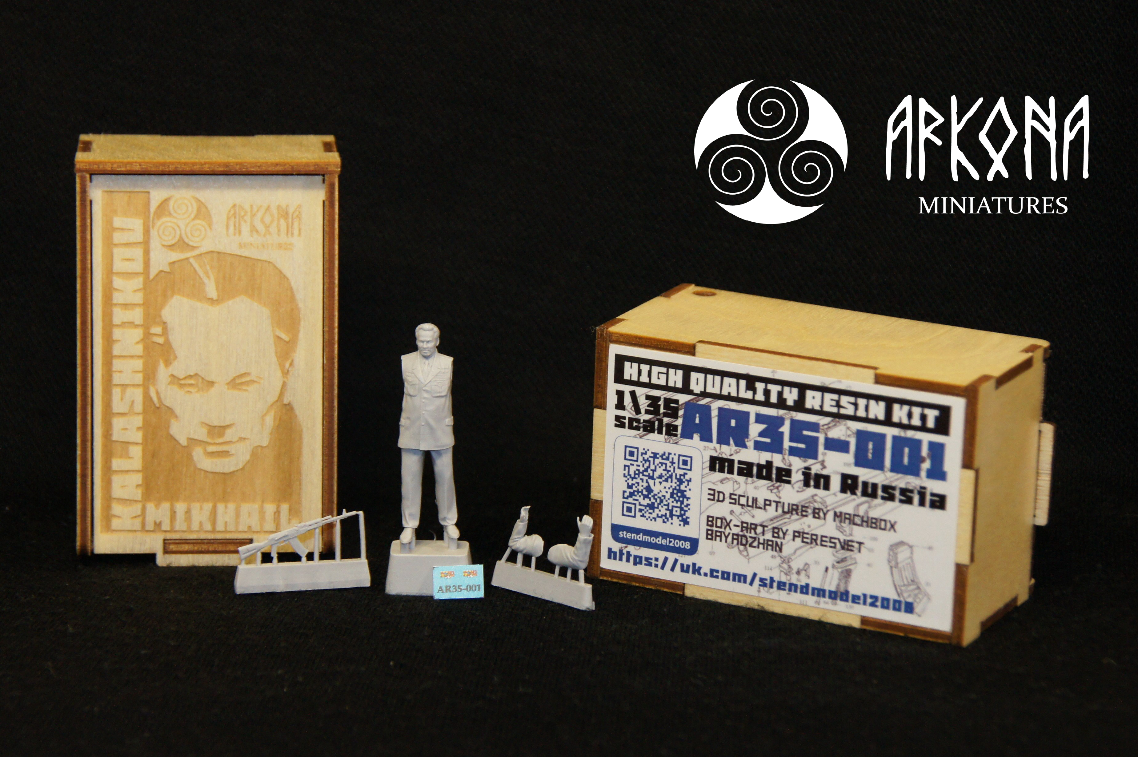 AR35-001 Михаил Калашников ( деревянная подарочная упаковка) Arkona Miniatures, 1/35 в Мурманске, купить в интернет-магазине, цены, фото